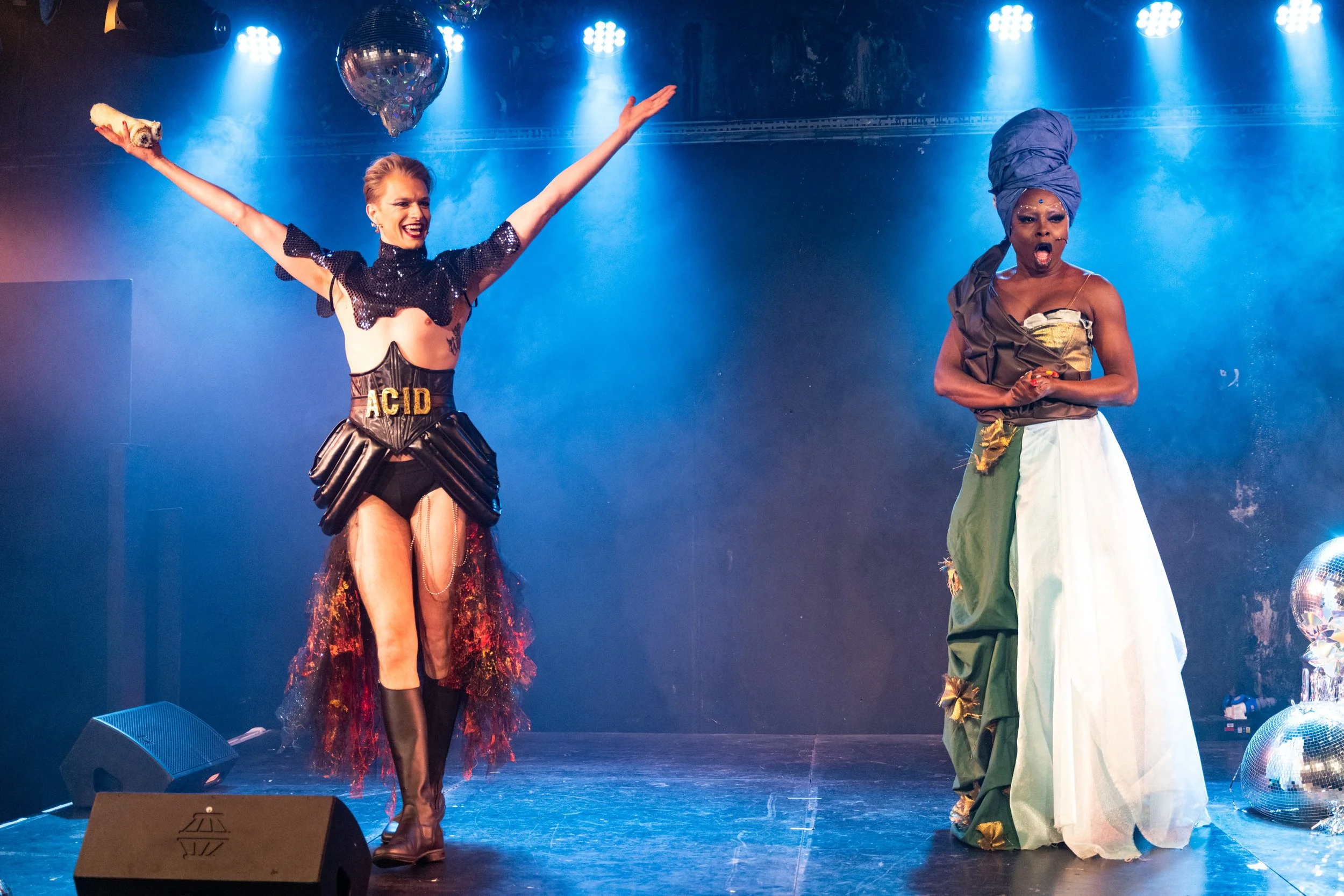 March 2023 saw Acid’s Reign premiere at VAULT Festival, following rehearsals at Theatre Deli, London. This was our first fully new production as a sustainable company, with nearly all production items built from recycled, reused or upcycled materials - specifically four drag/cabaret costumes.
